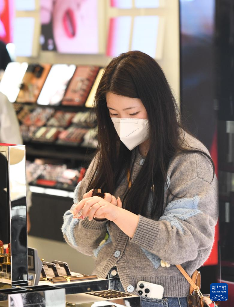 ??1月8日,游客在中免集團(tuán)海口日月廣場(chǎng)免稅店選購(gòu)免稅商品。