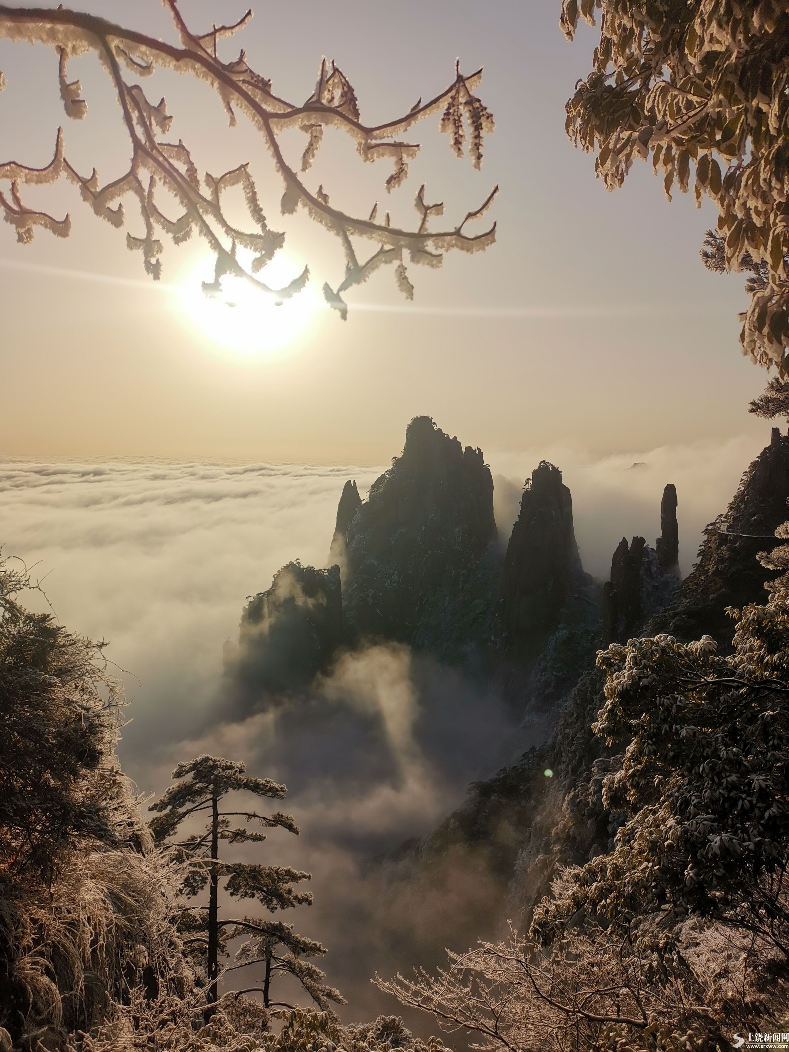 連日來,三清山風景名勝區出現持續降雪,景區成了冰雪世界。雪后的三清山銀裝素裹,玉樹瓊枝,山腰云海氤氳涌動,猶如蓬萊仙境。
