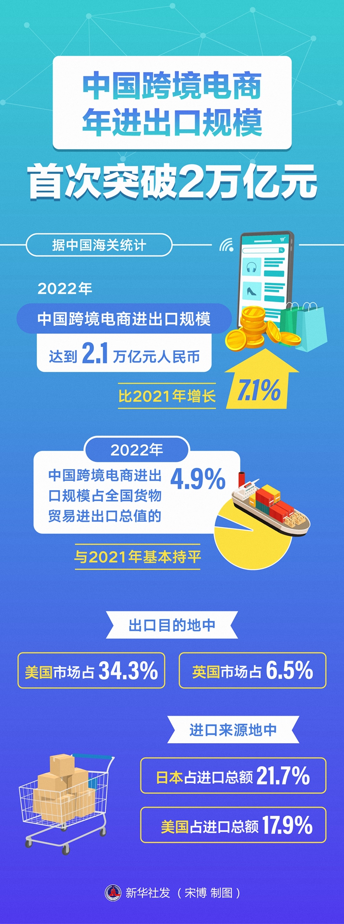 海關總署新聞發言人、統計分析司司長呂大良介紹說,近年來,中國跨境電商快速發展,在“買全球、賣全球”方面的優勢和潛力持續釋放,全球越來越多的消費者享受到跨境電商帶來的更多選擇和便利。