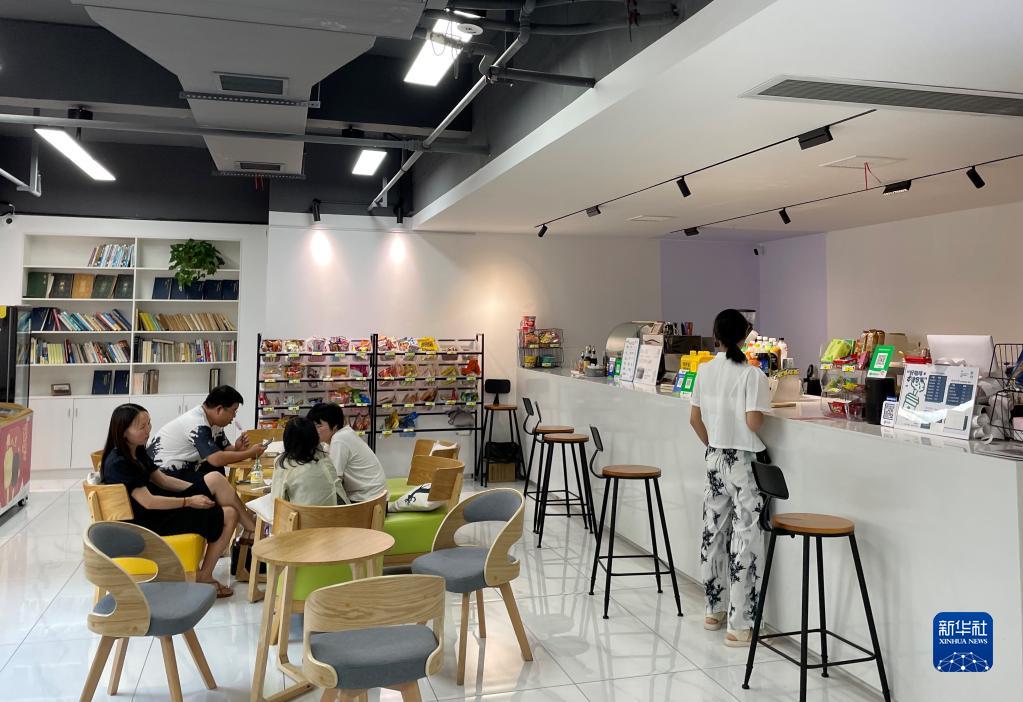 湖南省長沙市雨花區英維創新大廈內的眾創咖啡吧(7月5日攝,手機照片)。 新華社記者 余春生 攝