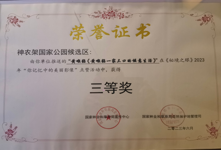 ??論壇期間,由國家林業和草原局(國家公園管理局)、貴州省人民政府共同主辦的“呵護自然之美·促進綠色發展---高質量推進自然保護地體系建設”主題論壇上,國家林業和草原局與世界自然保護聯盟(IUCN)中國代表處為神農架國家公園候選區、內蒙古大興安嶺汗馬國家級自然保護區等13家 《IUCN綠色名錄》中國自然保護地管理機構授牌 “世界最佳自然保護地”;同時,國家林業和草原局公布《秘境之眼》年度優秀視頻獲獎名單,神農架國家公園候選區推送的《黃喉貂一家三口的愜意生活》在《秘境之眼》2023年度“你記憶中的美麗影像”點贊活動中獲“三等獎”。