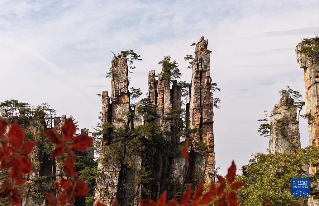 這是11月22日拍攝的湖南張家界國家森林公園天子山景色(無人機照片)。 初冬時節,各地層林盡染,景色如畫。