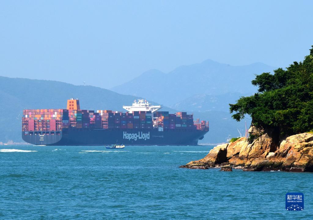 11月20日,一艘赫伯羅特公司集裝箱船駛向香港貨柜碼頭。新華社記者 陳鐸 攝