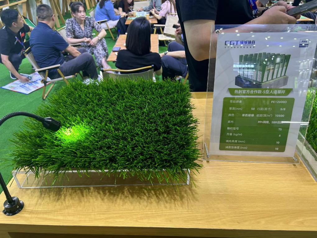 在體博會現場,有一片“長草”的區域人來人往。人們拿起展臺上各種形態、各種材質的人造草皮對比討論著。相較于天然草坪高昂的種植、養護費用,人造草坪不僅造價更低而且更加節能。盡管世界杯、歐錦賽等大賽的正式場地仍需要使用天然草,但出于多重考慮,許多足球俱樂部正在逐漸將訓練場的天然草替換為人造草。這也為許多中國企業提供了出??臻g。