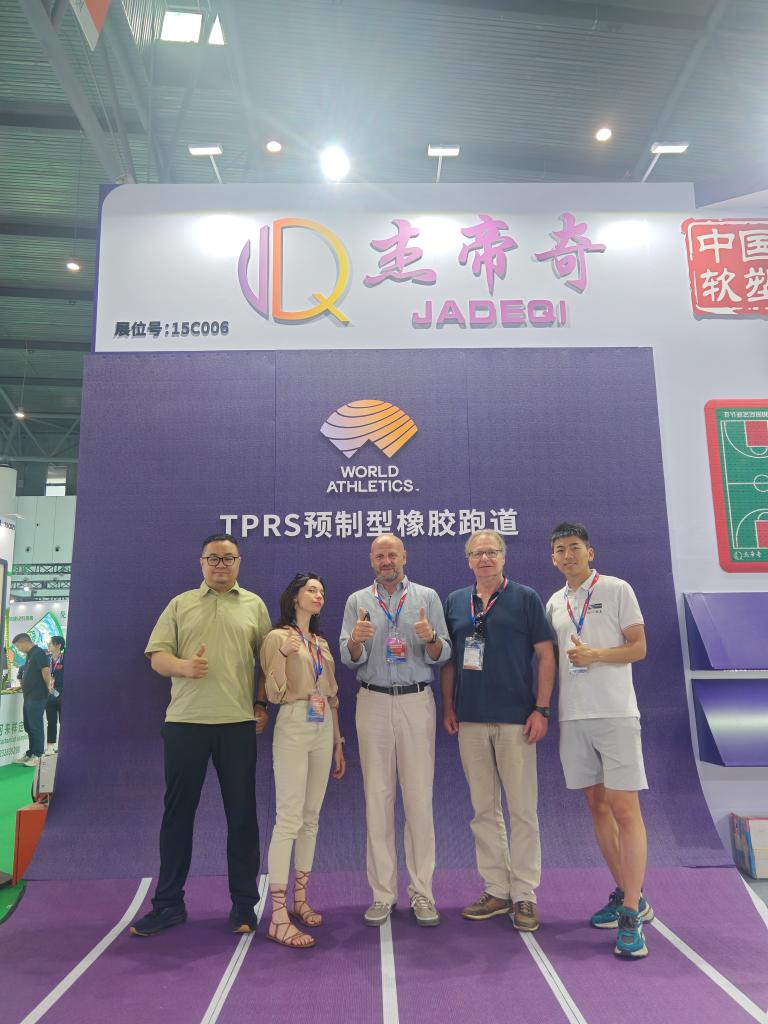 體博會期間,河北杰帝奇體育用品有限公司外貿部的總經理楊磊忙得不亦樂乎。作為一家專做運動地板相關業務的公司,他們在2023年邁出了“出?!钡闹匾徊健澲鸀跆m巴托2023東亞青年運動會的三人籃球等項目。