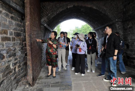 馬玉萍(左一)為游客介紹建昌古城歷史。王磊攝