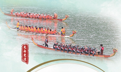 龍舟競渡又稱“龍舟賽會”“賽龍舟”“劃龍船”等。這是端午期間最富節慶和聯歡氣氛的一項集體競技活動。