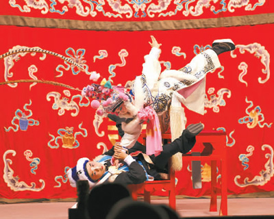 江蘇省昆山市石牌中心小學校學生表演《擋馬》。