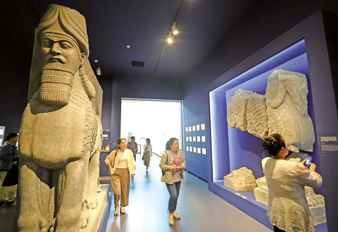 游客井然有序地在中國(guó)國(guó)家博物館參觀“守護(hù)與重光”展覽。