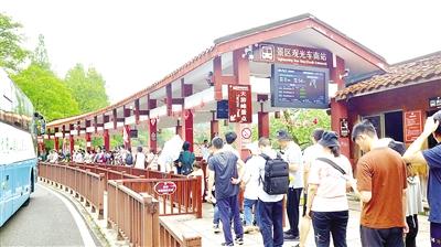 游人在景區排隊乘車