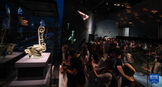 當(dāng)日,“探秘古蜀文明——三星堆與金沙”展覽在北京大運(yùn)河博物館(首都博物館東館)開幕。展覽匯聚了四川廣漢三星堆博物館、成都金沙遺址博物館等12家文博機(jī)構(gòu)極具古蜀文明特點(diǎn)的文物265件(套),分為“發(fā)現(xiàn)三星堆”“解讀三星堆”“定位三星堆”三個(gè)篇章。