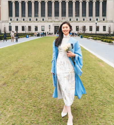 不久前,在哥倫比亞大學畢業典禮上,劉佳珊身穿漢服亮相,成為校園里一道靚麗的風景?!澳翘欤也粌H穿了明制漢服,還戴了簪花,一個會做漢服造型的朋友幫我打造了妝容?!眲⒓焉赫f,“穿上漢服以后,幾乎所有走過的路人都會回頭看我,還會好奇地問我的裝扮是什么,從頭飾、衣服到鞋。我向他們介紹說這是中國的漢服,不少人都夸它好看,我的心底生出由衷的自豪,希望更多人看到我們的服裝,了解我們的歷史和文化?!眲⒓焉赫f。