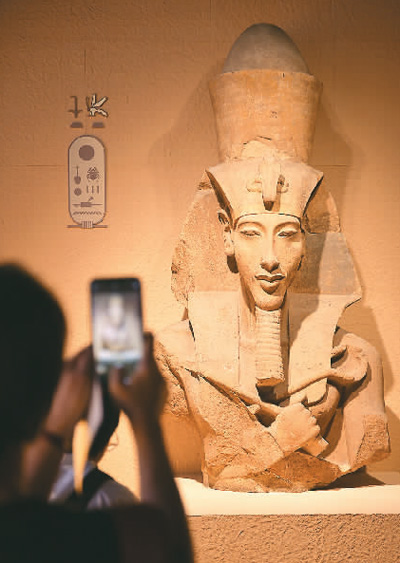 觀眾在上海博物館參觀“金字塔之巔:古埃及文明大展”。