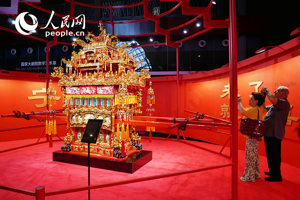 人民網北京8月11日電 (記者韋衍行)8月9日,“歡喜寧波——溫故·非遺展”在國家大劇院開幕。包括寧海十里紅妝婚俗、朱金漆木雕、泥金彩漆、金銀彩繡、骨木鑲嵌在內的5個國家級非遺項目亮相。