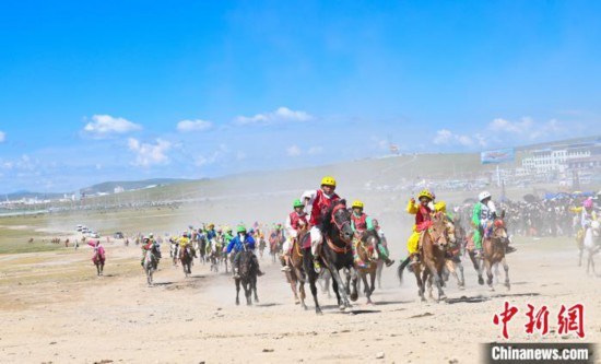 圖為8月12日,210名選手角逐那曲恰青羌塘賽馬節。 中新社記者 趙朗 攝