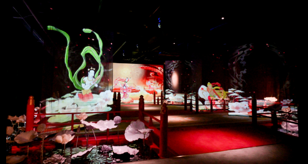 據介紹,EDCC運用創新展示技術和手段,把文化表達變成可看、可聽、可互動的沉浸式體驗。空間內所運用的虛擬現實技術、增強現實技術、裸眼3D呈現、AI生成技術等,可讓參觀者身臨其境地體驗展覽內容。新一代大屏、音響系統等多媒體元素融入,以及智能設備的加入為參觀者帶來更加個性化、定制化的展覽體驗。
