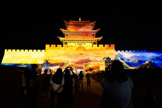 “夜游項目的燈光、音響和動畫效果都非常出色,身處曠野之中、星空之下,更能感受嘉峪關的雄偉。”來自寧夏銀川的游客黃莉說,她和家人沉浸于一步一景的故事中,仿佛瀏覽了一部長城史詩。