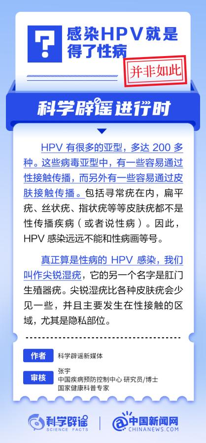 中新網(wǎng)10月3日電 HPV病毒有很多的亞型,多達(dá)200多種。這些病毒亞型中,有一些容易通過(guò)性接觸傳播,而另外有一些容易通過(guò)皮膚接觸傳播。包括尋常疣在內(nèi),扁平疣、絲狀疣、指狀疣等皮膚疣都不是性傳播疾病(或者說(shuō)性病)。因此,HPV 感染遠(yuǎn)遠(yuǎn)不能和性病畫(huà)等號(hào)。