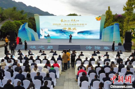 18日,2024第八屆白帝城國際詩歌節在“中華詩城”重慶奉節白帝城·瞿塘峽景區精彩上演。本屆詩歌節以“長江之歌 詩盛三峽”為主題,旨在以詩為媒、以文會友,向海內外的詩人和詩歌愛好者全景呈現奉節的詩意山水和人文風情,進一步擦亮“中華詩城”金字招牌。