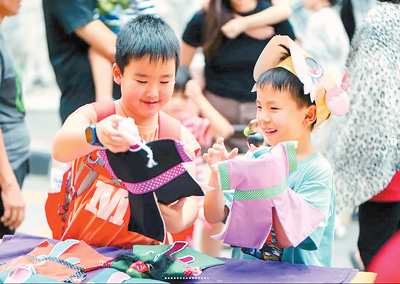 馬來西亞乙巳蛇年檳城廟會現場,孩子正在體驗文化活動。