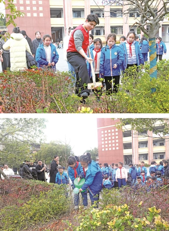 近日,橫峰農(nóng)商銀行志愿服務(wù)隊與該縣第一小學(xué)師生共植樹木。活動現(xiàn)場,志愿者們率先示范,揮鍬挖坑、扶苗培土,小學(xué)生們化身“環(huán)保小衛(wèi)士”,提桶澆水,用稚嫩雙手呵護綠色希望。