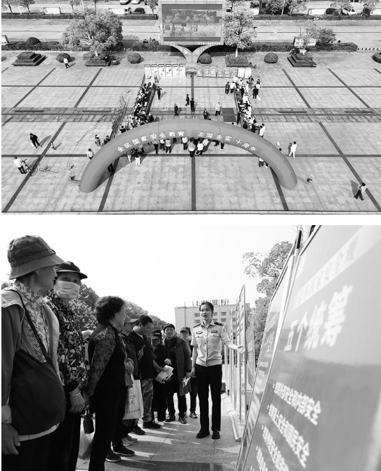 4月9日,公安干警在余干縣市民廣場向市民宣傳國家安全知識。當天,余干縣委辦(保密機要局)、縣委宣傳部、縣公安局等單位聯合開展全民國家安全教育日宣傳活動,通過發放宣傳資料、宣傳國家安全知識等方式,提高廣大群眾的國家安全意識。