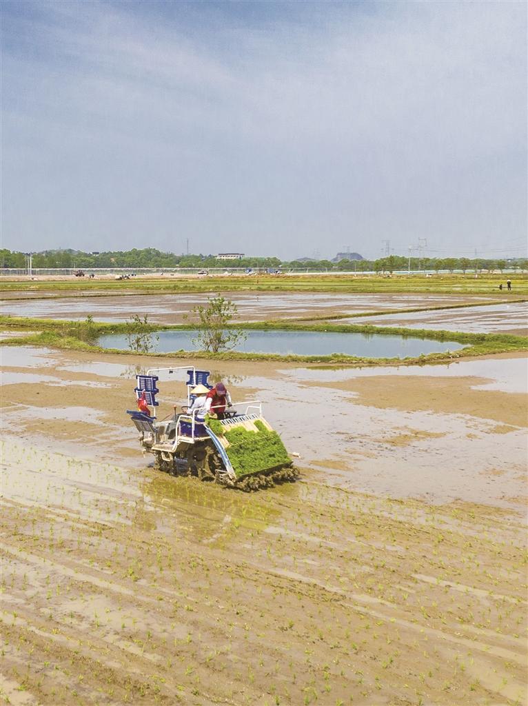 時下,正值早稻種植時期。4月18日,橫峰縣蓮荷鄉丁家村農田里,農機手駕駛插秧機開展早稻插秧作業,田間地頭呈現一派繁忙的春耕景象。近期以來,橫峰縣各地積極開展搶農時保春耕工作,大力推廣早稻集中育秧和機械化插秧,進一步降低勞動強度、節約人力成本,提高糧食生產效率,為糧食穩產增效打下堅實基礎。
