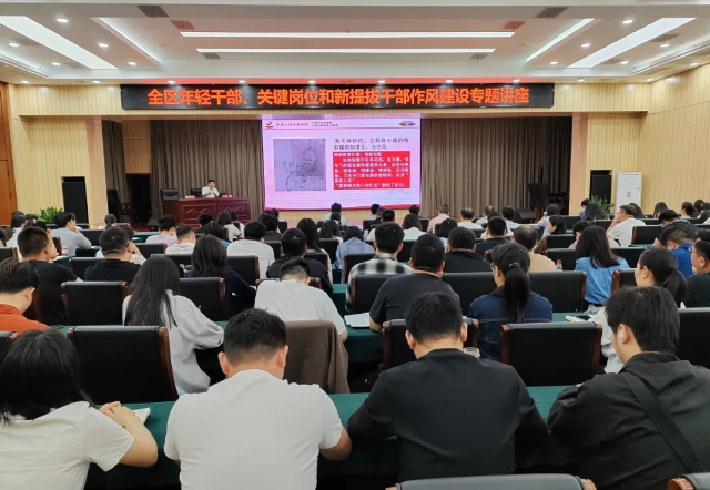 為切實加強作風建設,鍛造忠誠干凈擔當的高素質專業化干部隊伍,著力加強年輕干部、關鍵崗位和新提拔干部作風建設和履職能力素養,近期,我區舉辦年輕干部、關鍵崗位和新提拔干部作風建設專題講座,邀請了中共上饒市委黨校黨史黨建教研室主任、副教授王洪春授課。全區140余名年輕干部參加。