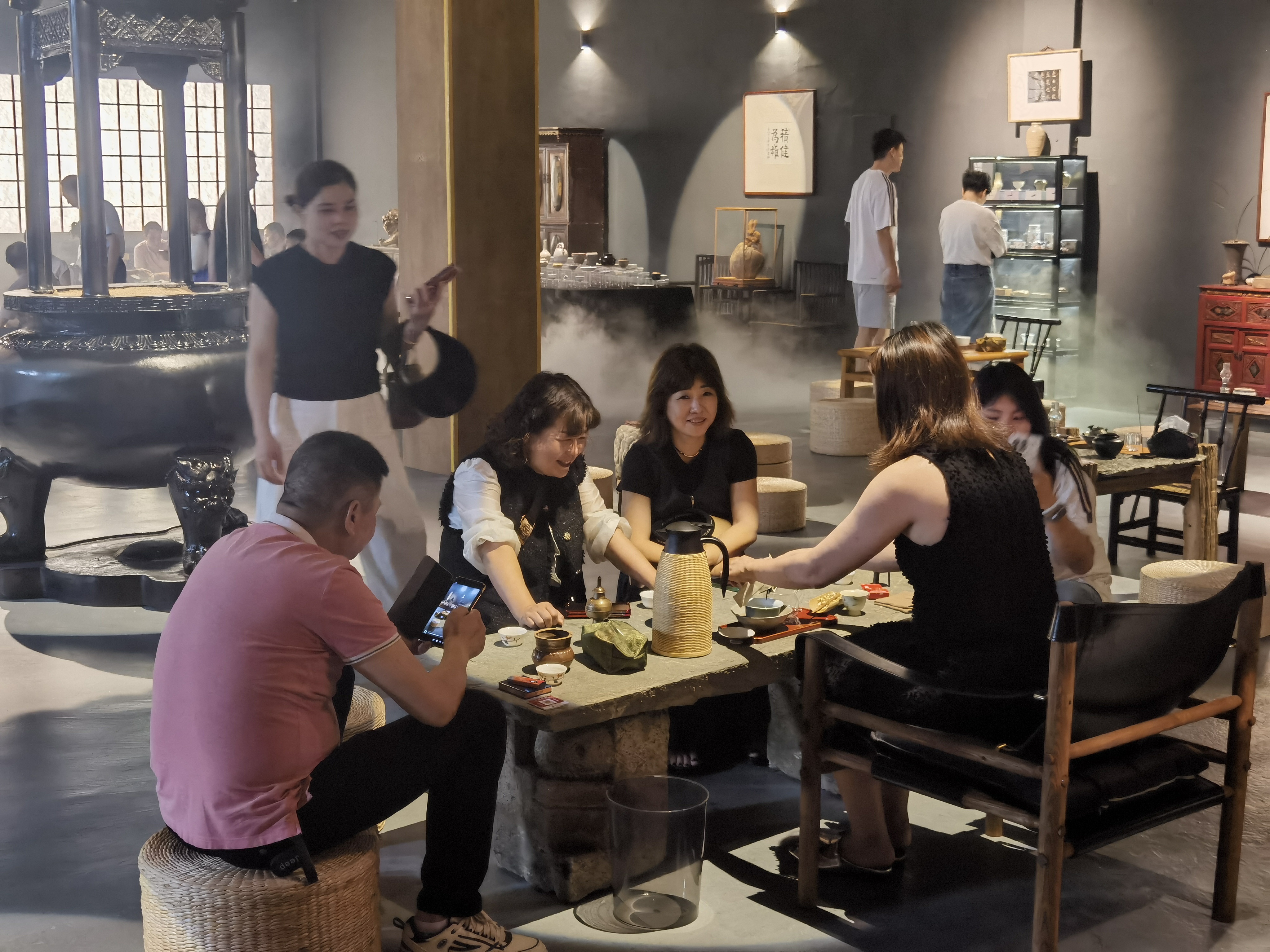 “作為一名從小就喜歡國(guó)學(xué)與茶文化的年輕人,看過(guò)許多茶樓、茶館、茶莊、茶肆等,但大多數(shù)幾乎是千篇一律的風(fēng)格,我一直想打破邊界,開(kāi)一家與眾不同的茶館。當(dāng)‘國(guó)潮風(fēng)’席卷社交平臺(tái),我突然意識(shí)到——傳統(tǒng)茶文化不該困在古色古香的框架里。于是,帶著打破邊界的野心,創(chuàng)立了小滿茶堂,要讓這座茶堂成為不同年齡段人的靈感磁場(chǎng)、社交熱場(chǎng)與打卡勝地,讓茶文化‘潮起來(lái)’!”小滿茶堂負(fù)責(zé)人王毅超如是說(shuō)。