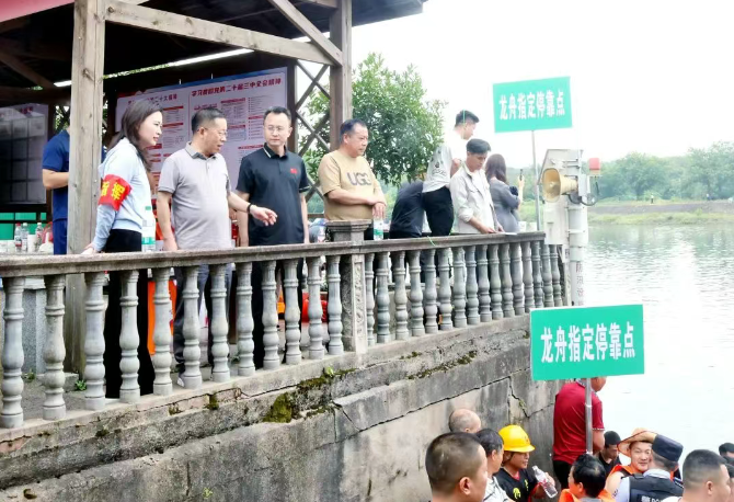 鄭國良、余洪雷分別到龍舟競渡點實地踏勘河道埠頭周邊環境,詳細了解賽道布置、觀賽區域、路面管控、車輛停放等安全措施落實情況,認真聽取有關情況匯報,就進一步做好現場秩序維護、后勤保障、應急救援等工作作強調。