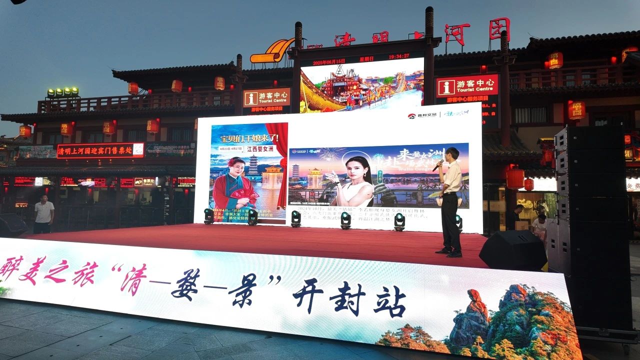 6月15日晚,“清-婺-景”“婺-望-三清”主題旅游線路推介會走進河南省開封市清明上河園景區。本次推介會由三清山景區,婺源鄉村文旅,婺女洲景區,葛仙村景區,逍遙谷景區等聯合推介。三清山文旅推介會首次進入旅游園區,為現場數千游客送上一場來自上饒旅游的精神盛宴。