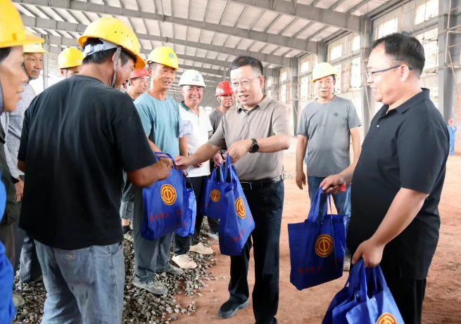 鄭國良、余洪雷一行分別到玉恒廣場外賣驛站、城市環境衛生服務中心、宏茂紡織、德隆四期建設現場等地,了解他們的工作情況、生活狀態,代表縣委、縣政府向奮戰在一線的新就業形態勞動者、環衛工人、建筑工人、交通城管等值班值守人員表示親切慰問,對他們在高溫環境下仍堅守崗位、辛勤付出表示感謝。