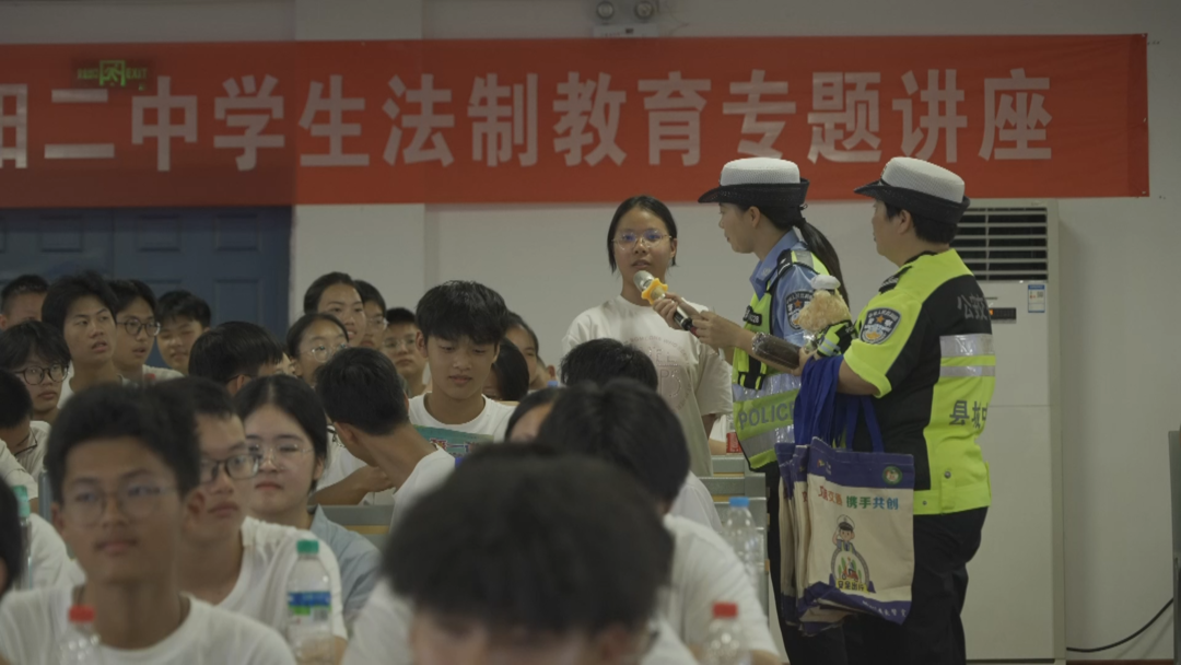 新學期即將開學,為筑牢秋季開學期間道路交通安全防線,切實提升廣大學生的交通安全意識與自我防護能力,有效預防和減少涉學道路交通事故,鄱陽縣公安交管民警緊扣開學季關鍵節點,走進鄱陽二中開展交通安全主題宣講活動,為學校師生送上了一堂生動實用的“開學第一課”。