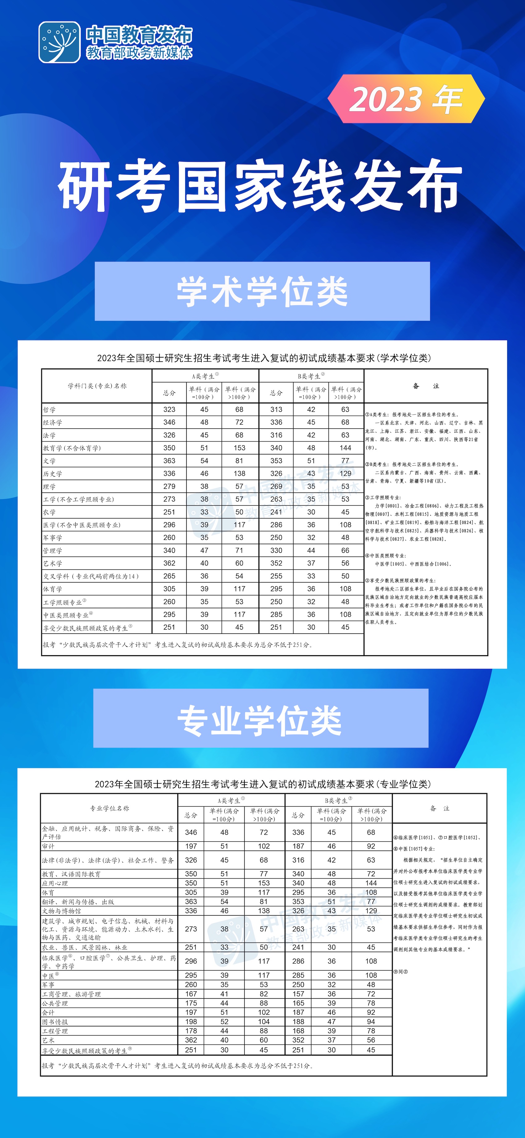 人民網北京3月10日電 (記者李依環)教育部今天正式發布《2023年全國碩士研究生招生考試考生進入復試的初試成績基本要求》(國家分數線)。根據《2023年全國碩士研究生招生工作管理規定》,各招生單位將在國家分數線的基礎上,自主確定并公布本單位考生進入復試的初試成績要求及其他學術要求。