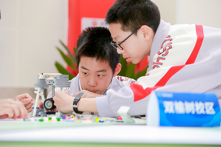 ??閉幕大會上演了線下總決賽。8支初中組學生代表隊在創客比賽環節,圍繞“地震下的最穩固的大樓”進行了模型搭建。在決賽競答環節,各校區團隊比拼了包括數學、物理、化學、天文、人工智能等多個領域的學科知識。經過激烈角逐,一零一中上地校區代表隊獲得了本次比賽的冠軍。