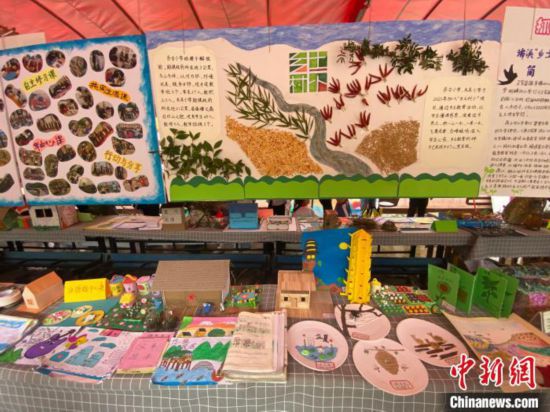 在每個活動展臺旁,都有各個學校派出的小解說員,為來訪嘉賓介紹自己的學校以及同學們這學期在創(chuàng)新教育課“鄉(xiāng)土課”上完成的創(chuàng)作作品。