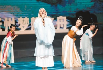 “京口瓜洲一水間,鐘山只隔數重山。春風又綠江南岸,明月何時照我還。”伴隨著悠揚的配樂,王安石的名作《泊船瓜洲》被以歌曲的形式在舞臺上演繹呈現。令人矚目的是,字正腔圓的演唱者竟然是一名金發碧眼的俄羅斯留學生。