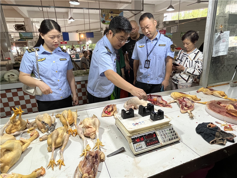 8月30日,信州區市場監督管理局在饒城開展電子計價秤專項檢查,嚴厲打擊利用電子秤作弊的計量違法行為,規范消費市場計量秩序,營造誠信、放心的市場消費環境。執法人員先后來到嘉百樂超市萬力店、五三集貿市場、八角塘菜場等地的水果、水產、零售店鋪,對電子計價秤使用商戶進行監督檢查。 記者 王調翁 攝