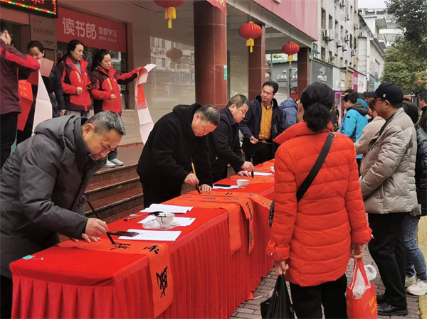 為弘揚中華民族優秀傳統文化,營造喜慶祥和的節日氛圍,豐富居民文化生活,2月5日,廣信區新華書店邀請該區書法協會書法家在中心門市、木言者書店舉辦了“祥龍獻瑞迎新春 翰墨飄香送祝福”贈春聯文化惠民活動。