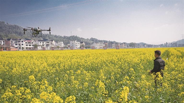 3月9日,橫峰縣農技人員搶抓晴好天氣深入田間地頭,了解油菜長勢和病蟲害防治情況,利用植保無人機開展油菜病蟲害統防統治“飛防”作業,助力農戶田間管理,確保油菜產業穩產增收。