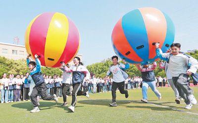 安徽省淮北市第十二中學,高三學生在參加趣味比賽。
