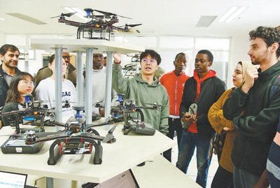 江蘇大學第四屆計算機文化節上,外國留學生在了解無人機功能和運行原理。