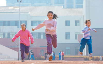 位于河北省雄安新區的雄安史家胡同小學,學生在操場上活動。雄安史家胡同小學是北京支持雄安建設、共享優質教育資源的學校之一。