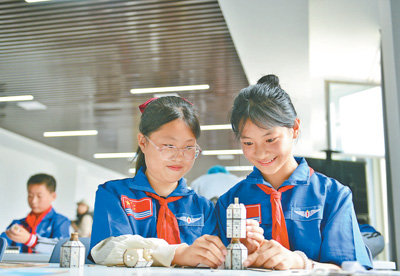 近日,山東省日照市東港區的天勰力航天科普教育基地,學生在體驗“日照三號”仿真衛星組裝。學生通過模擬體驗,感受科技魅力,點燃航天夢想。