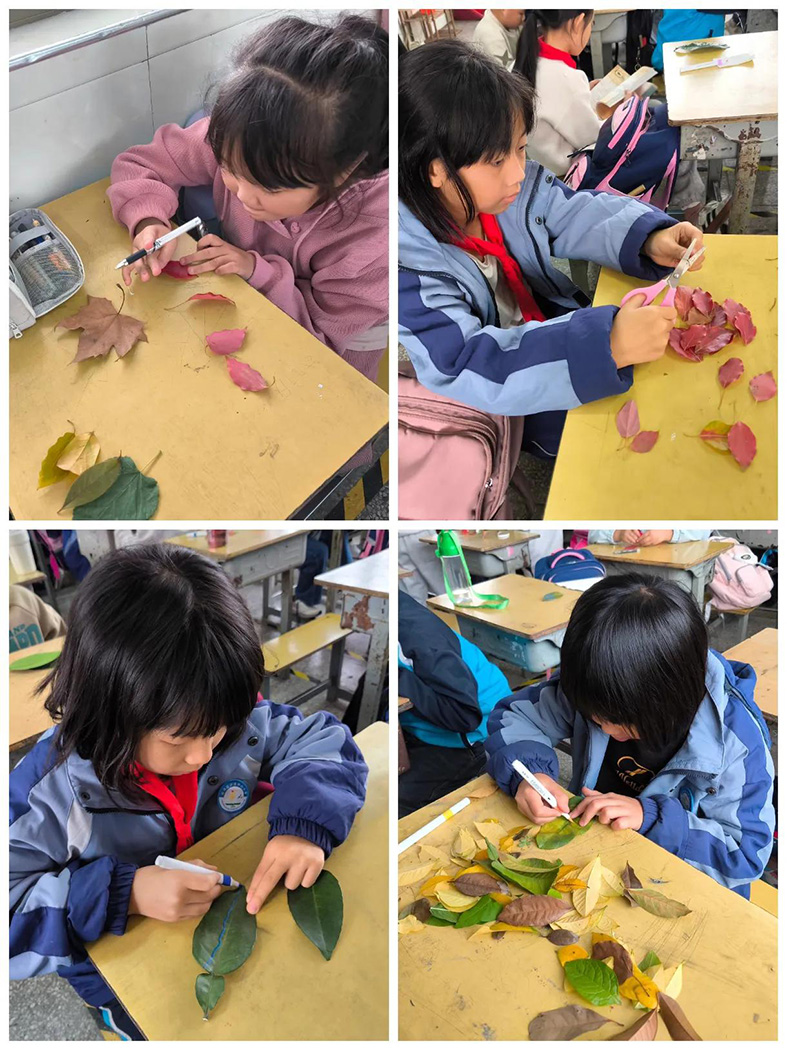 活動中,該校四年級(6)班的學生利用樹葉這一大自然的饋贈,發揮創意,制作出精美別致的書簽,有的勾勒出圖案,有的剪裁成形狀,有的寫下勵志名言,表達對大自然的贊美。這些書簽不僅展現了孩子們的童真,也體現了秋天的韻味。