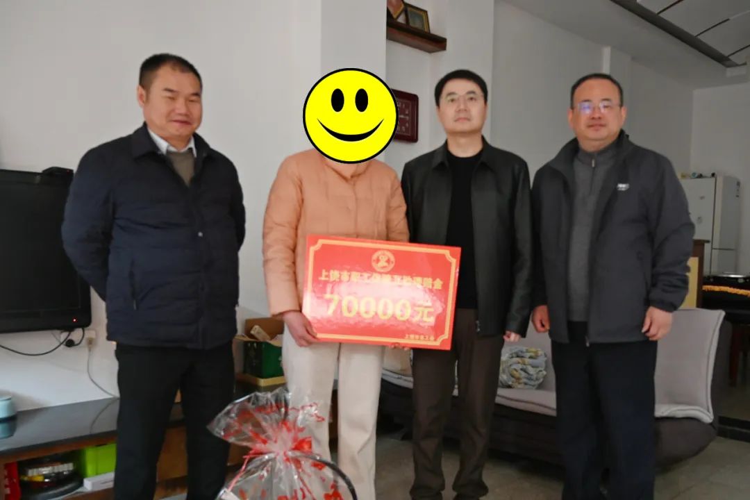 12月18日上午,上饒市總工會一行前往廣信區,看望慰問3名患病職工及其家屬,送上職工互助保障理賠金共計22.7萬余元。