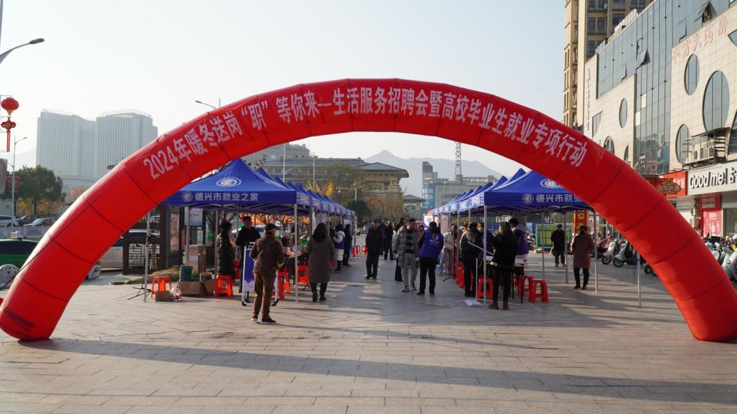 12月20日,德興市在福泰廣場舉辦了“2024年暖冬送崗,‘職’等你來——生活服務招聘季德興市專場”活動。