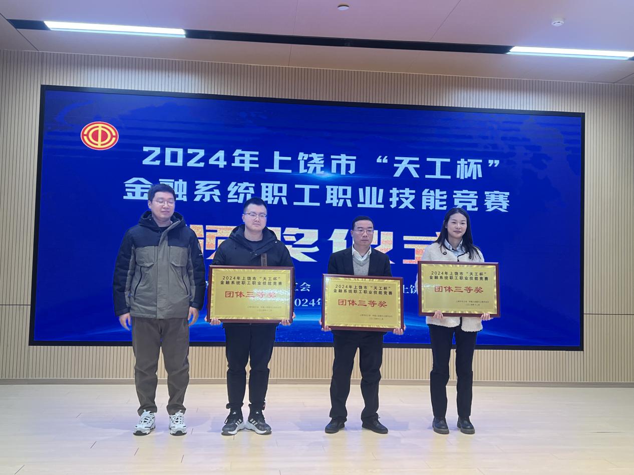 為激發全市廣大金融系統職工的勞動熱情、創造潛能,推動全市金融系統人才隊伍建設高質量發展,2024年12月16日,由上饒市總工會、中國人民銀行上饒市分行聯合開展的全市“天工杯”金融系統職工職業技能競賽在市工人文化宮成功舉辦。郵儲銀行上饒市分行代表隊經過激烈地角逐,從全市39支代表隊伍中脫穎而出,最終榮獲本次競賽團體三等獎,同時該市分行運營管理部祝源和風險管理部滕聰兩名選手分別榮獲優秀個人獎。