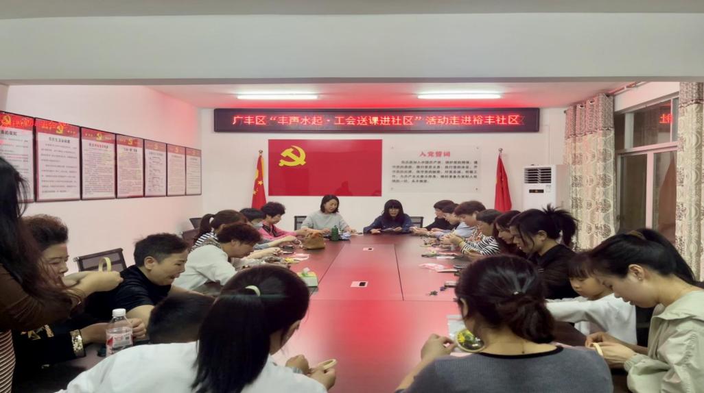 為持續豐富廣豐區職工群眾精神文化生活,提升職工群眾生活品質,打造廣豐區“豐聲水起”與“工會晚八點”的聯合品牌效應,讓大家在“家門口”就能享受公益資源,3月27日晚,廣豐區總工會走進裕豐社區開展“豐聲水起·工會送課進社區”活動,此次活動以風鈴花環掛件DIY為活動主題,吸引了30余名社區職工群眾參與其中。