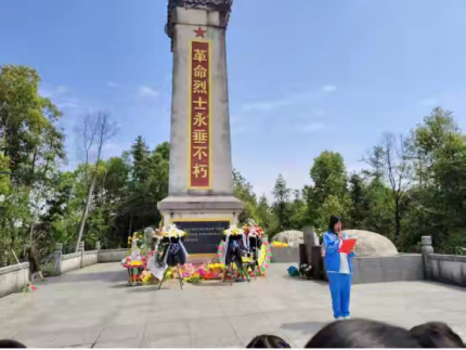 五雷革命烈士紀念碑坐落在蔥郁山林間,顯得格外莊嚴肅穆。厚重的大理石碑身挺拔聳立,碑頂紅星閃耀,正面“革命烈士永垂不朽” 八個大字蒼勁有力。活動現場,學生們整齊列隊,懷著崇敬之情向烈士紀念碑敬獻花籃,深深鞠躬并默哀,以表達對先烈們的無盡緬懷與崇高敬意。